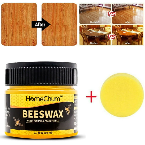 HomChum Natural Wood Seasoning Beeswax, 2.7oz Furniture Polish Wax Wood Cleaner Conditioner with Sponge for Wood Doors, Tables, Chairs, Cabinets Care