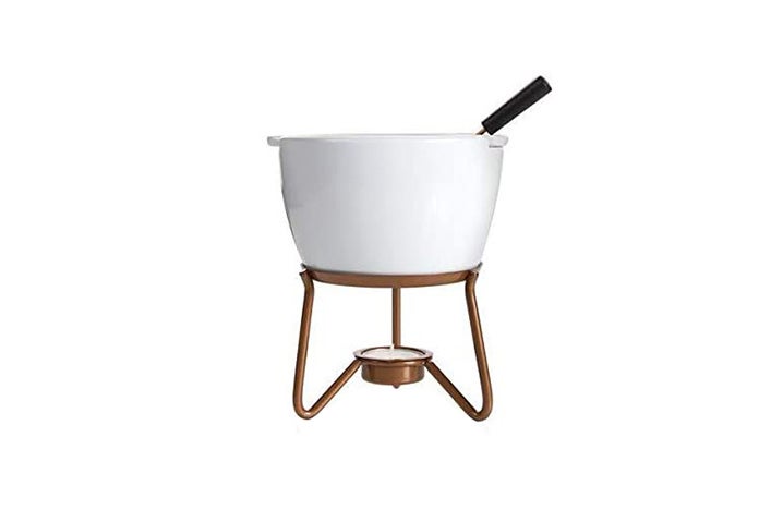 Best Fondue Pots | Best Fondue Sets of 2022 | Cozymeal 5. Best Ceramic Fondue Set: Boska Tapas Fondue Bianco L. The beautiful and affordable Boska Tapas Fondue Bianco L is the perfect set for the aesthetically inclined who want the best fondue pot at a great price. Made from sturdy ceramic, this elegant white fondue pot is set on a wooden base and features a tea light warmer with a star-patterned holder and four fondue forks.